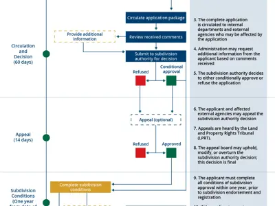- Once all input is received, the application is submitted to the Subdivision Authority for a decision.