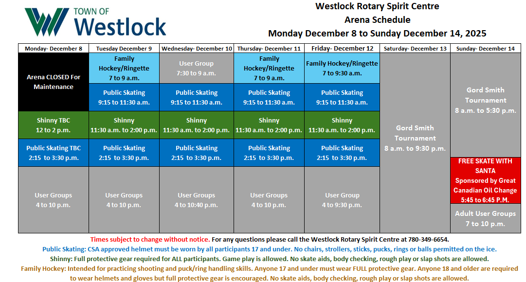 Winter Programming Westlock Region Residents: December 9 - 10, starting at 8 a.m.